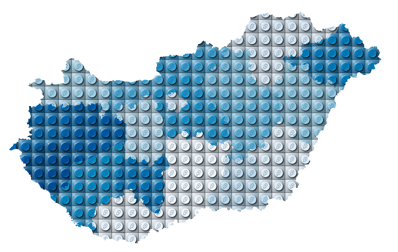 Az OK gombra kattintva már a Lego mintát kapjuk. Azonban ez a megközelítés csak fél siker, mivel a poligonok határáig tart a kitöltés, így a térkép így fog kinézni: