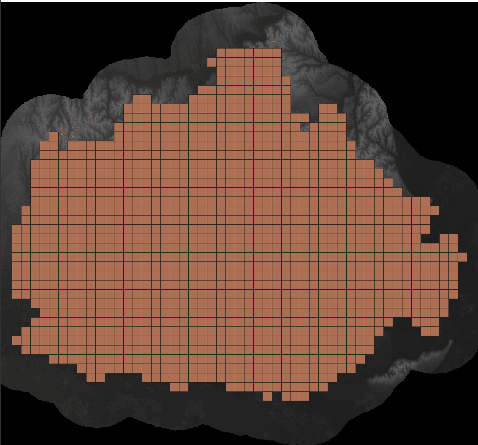 Létrehozok egy 3x3 km rácshálót a megye teljes területére.
